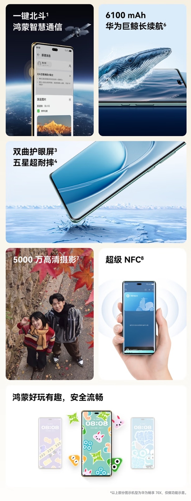 此外,这款新机还撑捏发送北斗卫星图片音书,长按畅享 X 键即可通过畅连诳骗发送或遴选北斗卫星音书。它还撑捏鸿蒙奢睿通讯,AI 鸠合秒回、双卡双通、弱信号通话、拥塞信号增强。