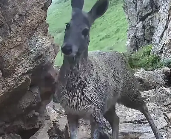那时它在河畔饮水,看到有东谈主近前,立马警惕地在河石间忠良逾越规避,身姿壮健十分,形似一个精灵。